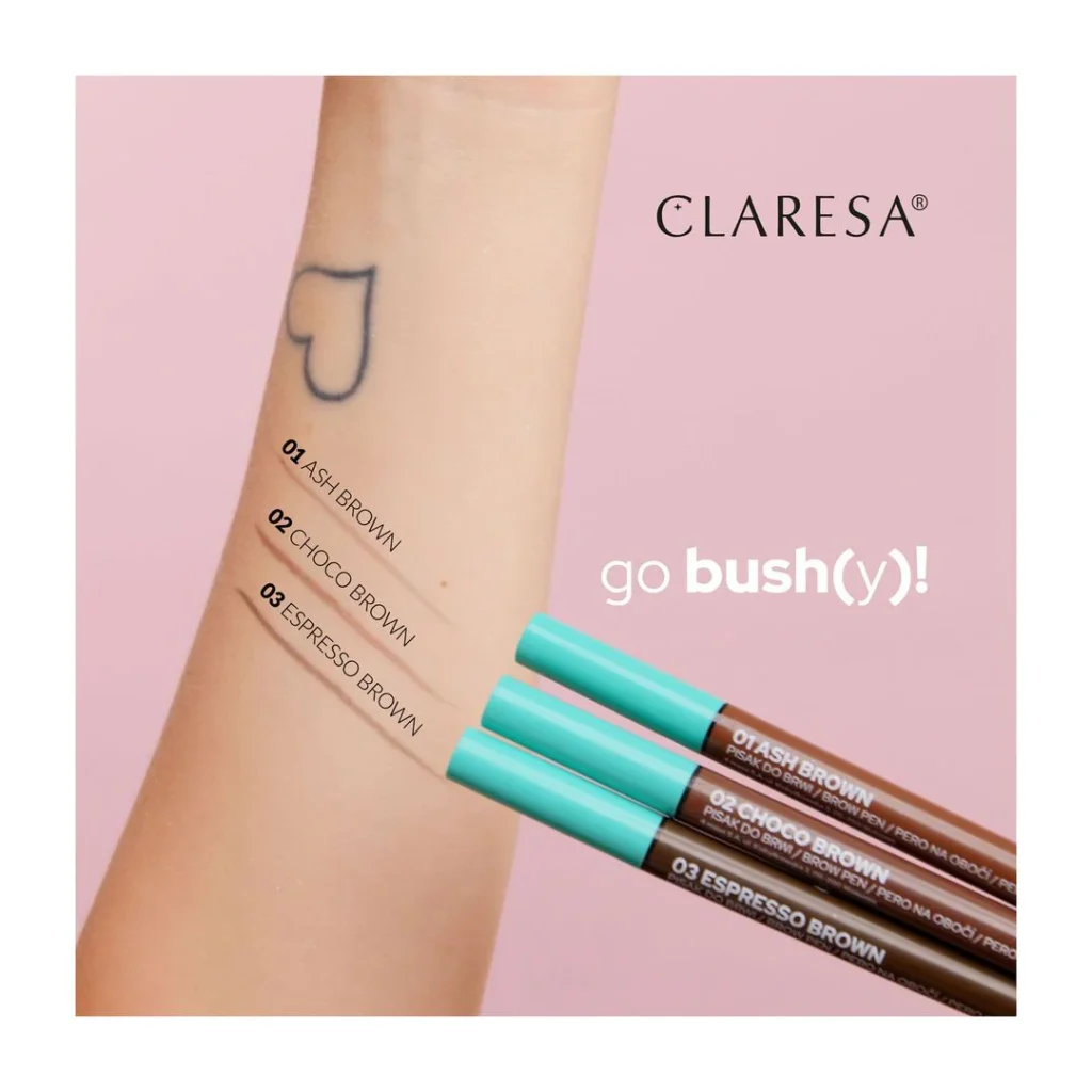 Claresa GO BUSH(Y)! Brow Pen No 02 Choco Brown: το ιδανικό εργαλείο για φυσικά, καλοσχηματισμένα φρύδια με ευκολία. Σχεδιασμένο για να δημιουργεί ακριβείς γραμμές που μιμούνται τις φυσικές τρίχες, αυτό το στυλό φρυδιών είναι η καθημερινή σου λύση για άψογα φρύδια.