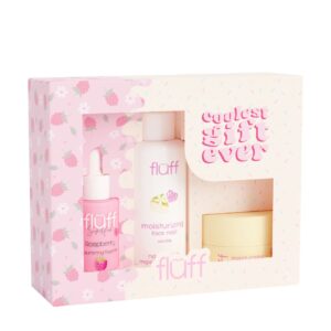 Fluff Raspberry Nourishing Face Milk 40ml: Aqua, Glycerin, Coco-Caprylate/Caprate, Glyceryl Stearate, Persea Gratissima Oil, Hydrogenated Farnesene, Saccharomyces/Xylinum/Black Tea Ferment, Propanediol, Niacinamide, Polyglyceryl-6 Palmitate/Succinate, Panthenol, Cetearyl Alcohol, Tocopheryl Acetate, Rubus Idaeus Fruit Extract, Pouteria Lucuma Pulp Extract, Hydrolyzed Rice Protein, Inulin Lauryl Carbamate, Tetrasodium Glutamate Diacetate, Dehydroacetic Acid, Citric Acid, Parfum, Xanthan Gum, Sodium Benzoate, Potassium Sorbate, Sodium Hydroxide, Benzyl Alcohol, CI 17200.